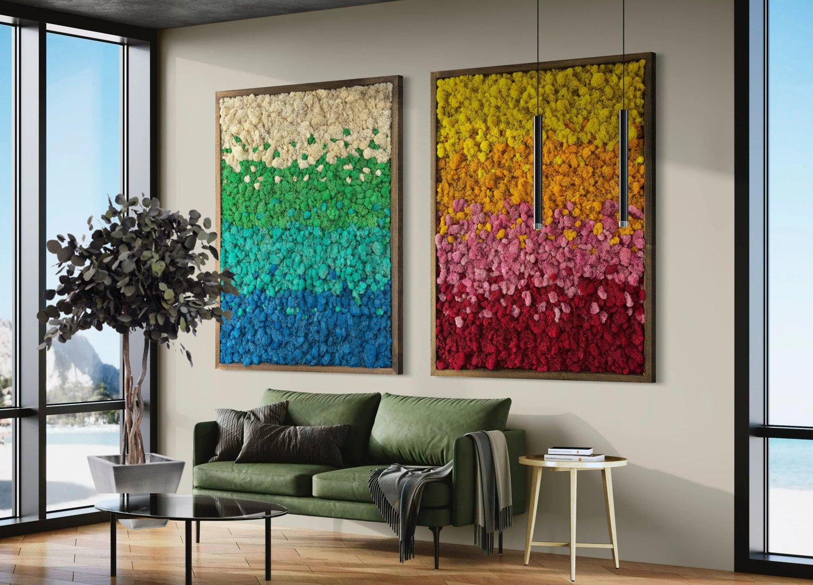 Håndlavet kunstværk med mos og planter – hver ramme er unik