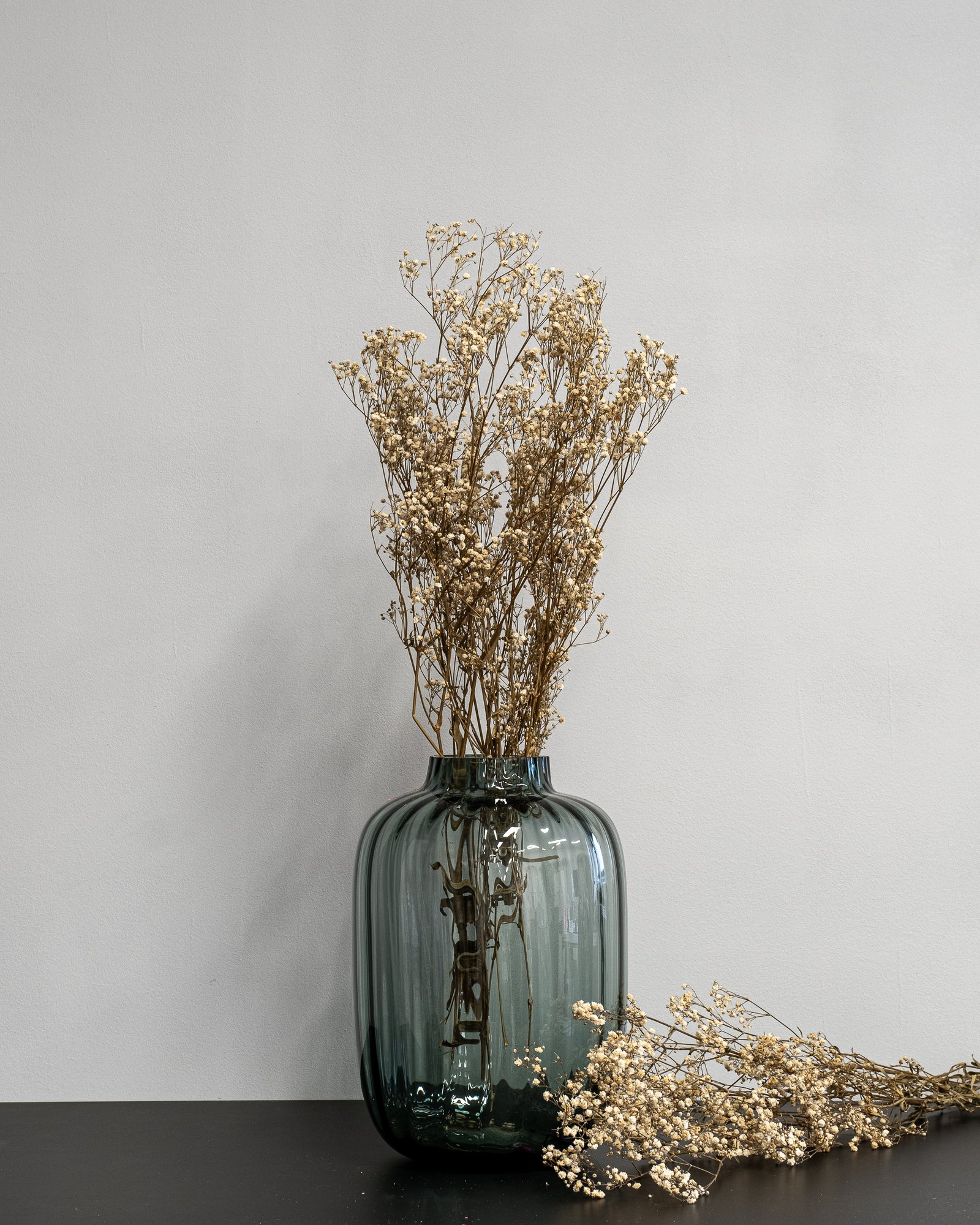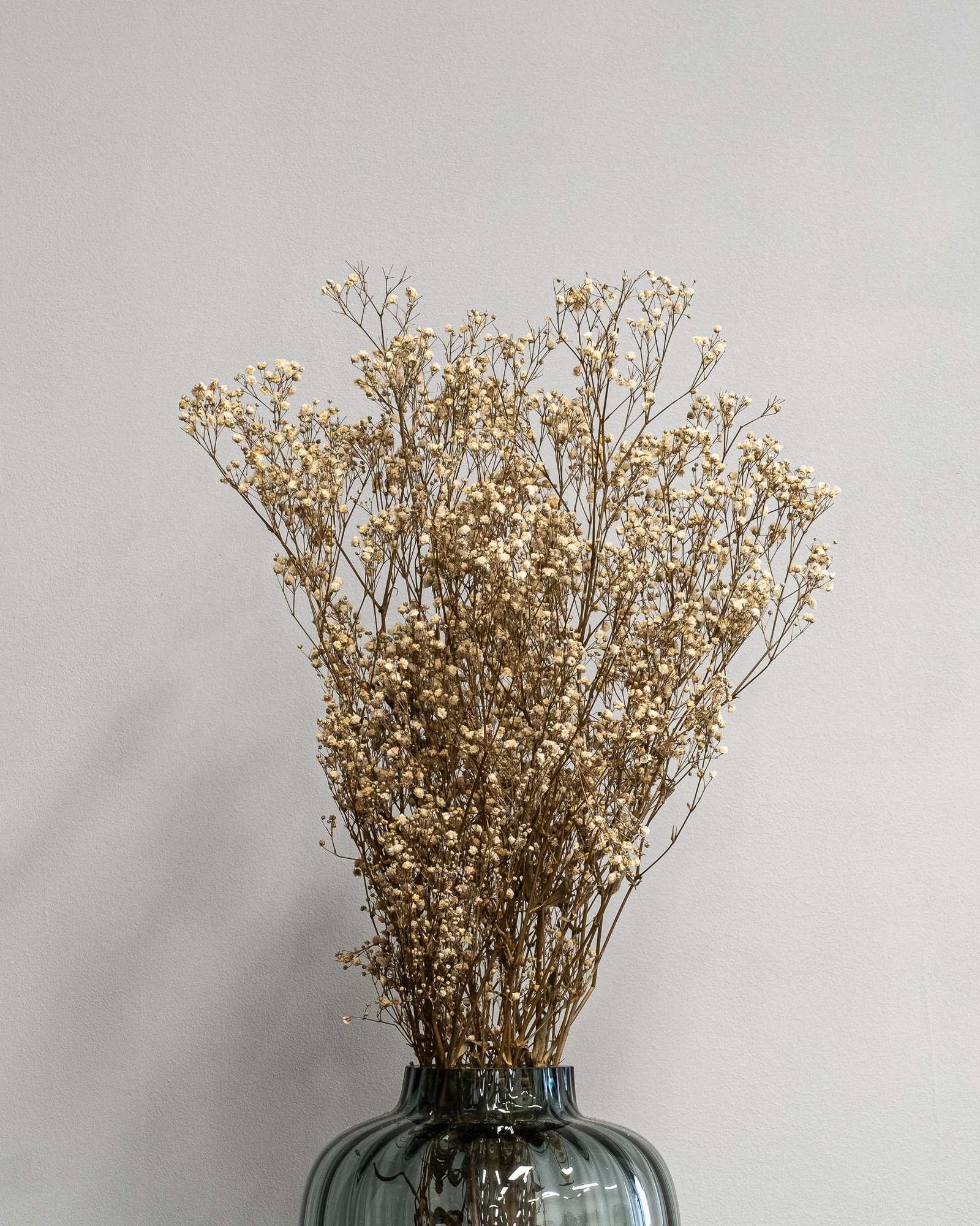 For at din konserveret slørblomst skal se mest muligt autentisk ud, anbefaler vi at placere den et sted, hvor en ægte blomst naturligt ville stå. Selvom den trives overalt, forstærkes illusionen, hvis den får lov at stå i en smuk keramik- eller glasvase. Da stænglerne er fleksible, kan du forsigtigt skille dem ad for at give bundtet mere volumen og skabe præcis den spredning, der passer til din vase.