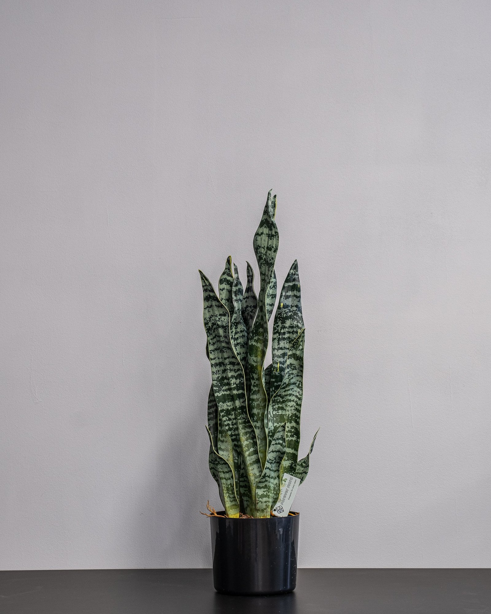 - Ægte Sansevieria-design: Opretstående, sværdformede blade med naturlige farvevariationer.