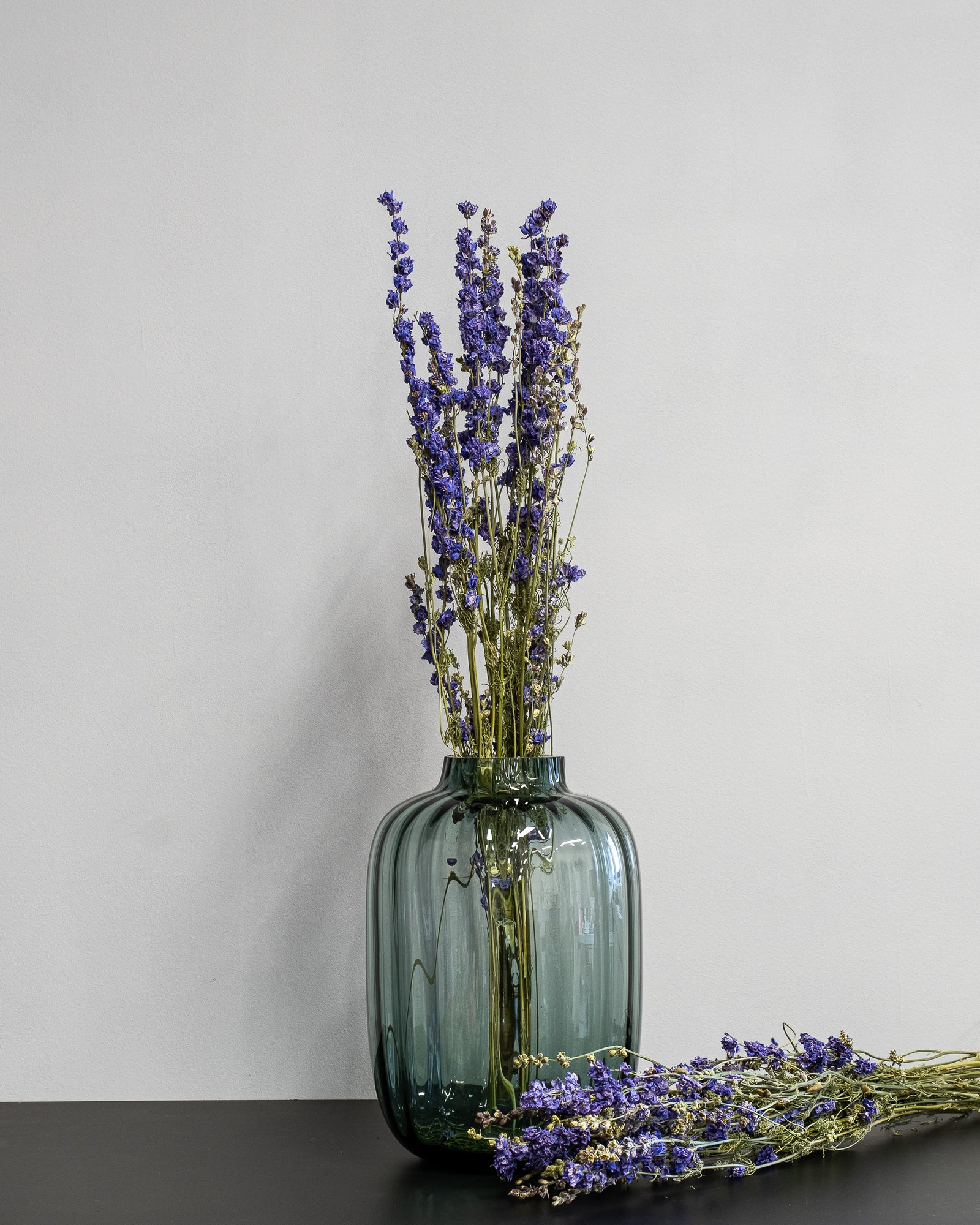 - Evighedsbuketter: Bland riddersporen med andre tørrede favoritter som lagurus (harehale), pampasgræs eller tørret eukalyptus for en fyldig og livlig buket.