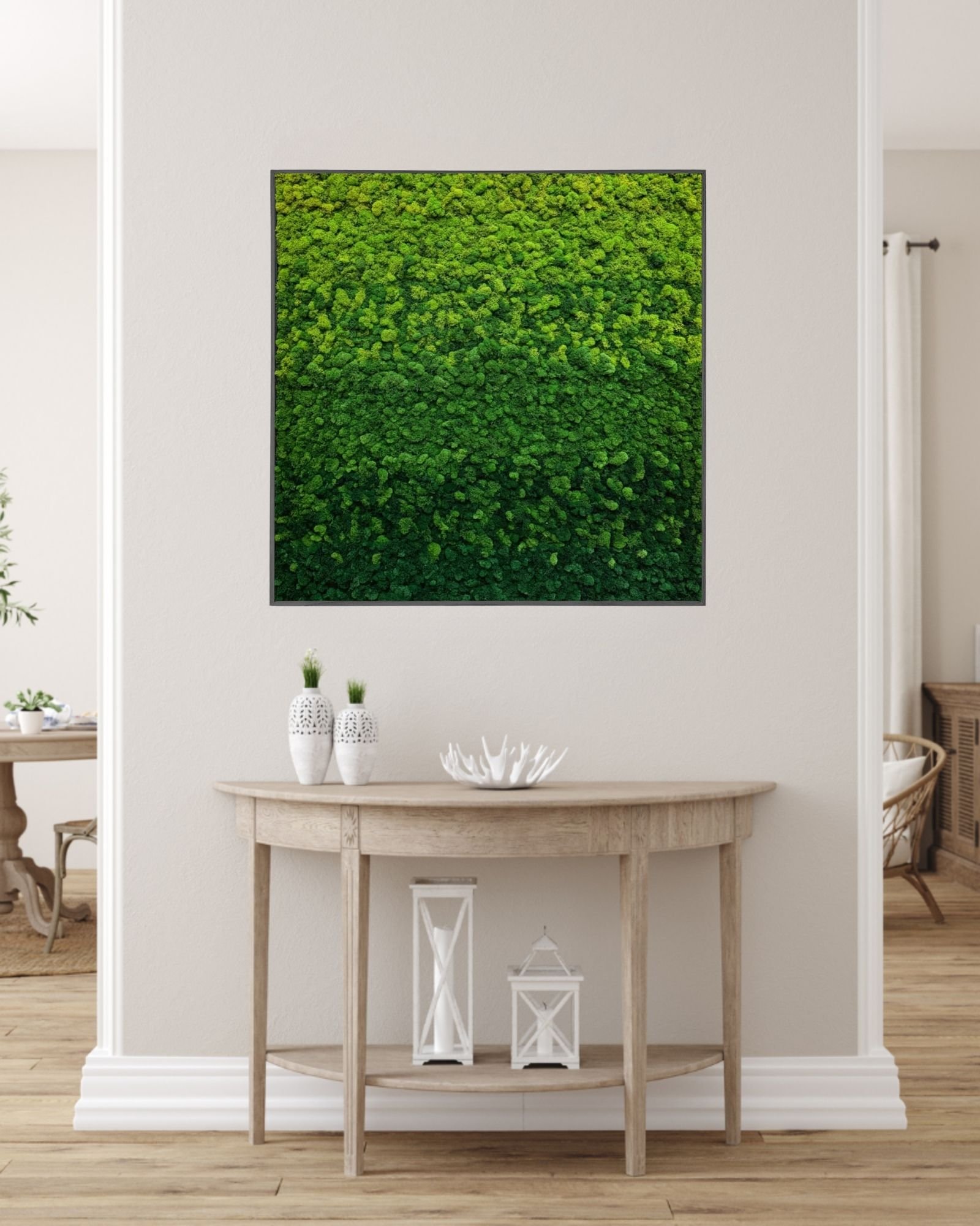 Håndlavet firkantet mosbilleder lavet af konserveret lavmos. Stilfuld plantevæg, der giver dit hjem eller kontor en naturlig og afslappet stemning.