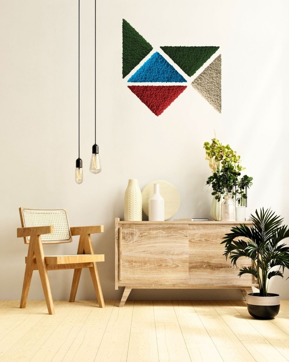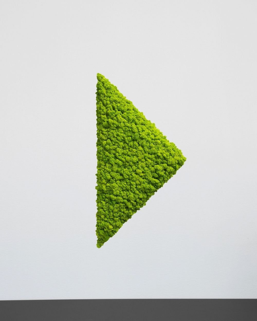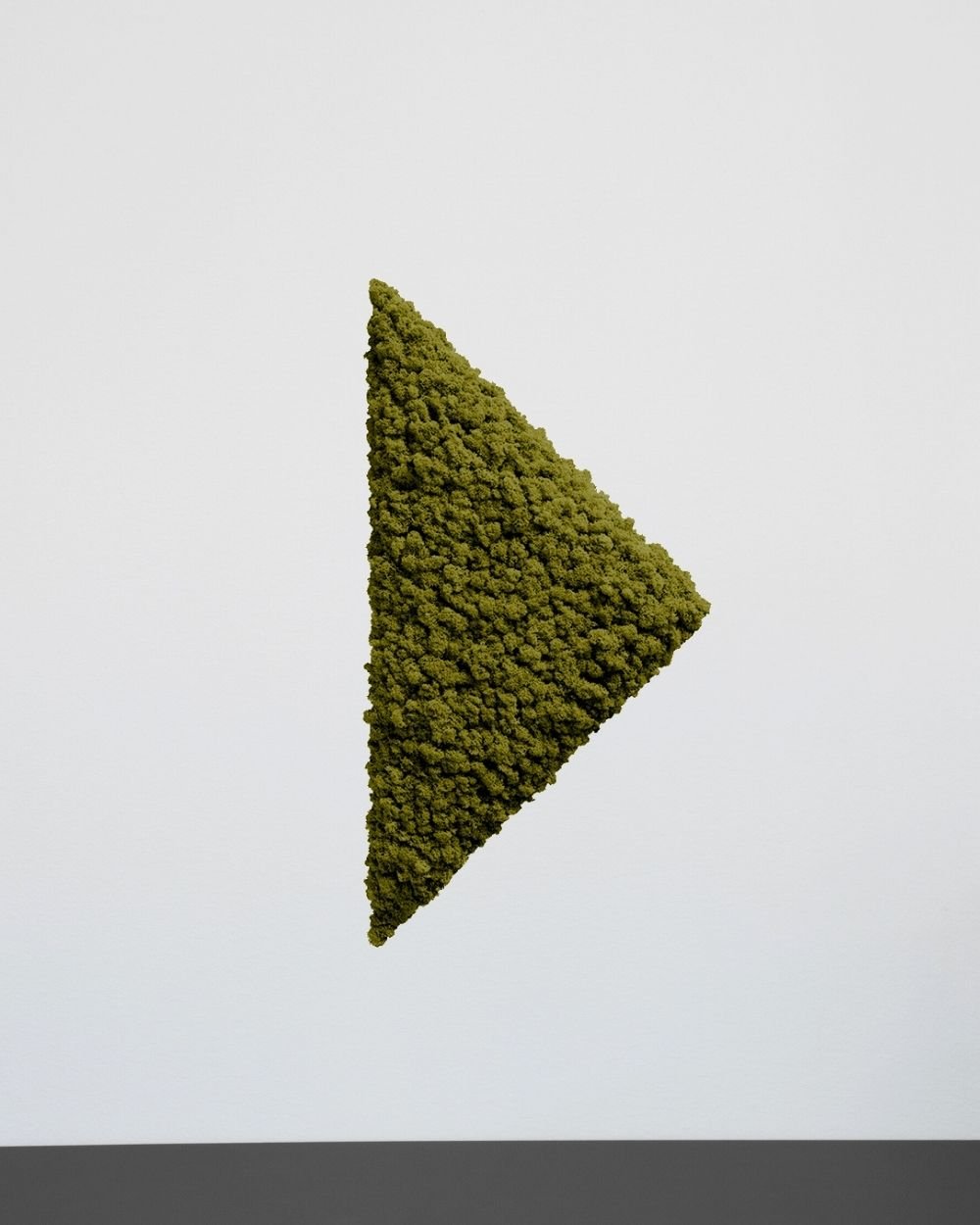 Mospanel Trekant – Et moderne og lydabsorberende vægpanel med ægte finsk rensdyrlav. Skab en naturlig atmosfære helt uden vedligeholdelse. Perfekt til både hjemmet og kontoret, hvor det forbedrer akustikken og tilfører rummet liv. Håndlavet og unikt design, der holder i mange år.